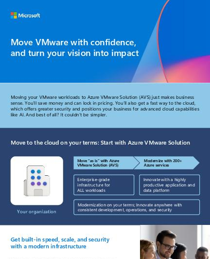 Moving to the cloud doesn’t have to mean reinventing how you work. This infographic highlights how Azure VMware Solution enables you to lift and shift VMware workloads with ease while preserving familiar tools, lowering costs, and unlocking future-ready innovation. View the infographic to see how to move with confidence. Reach out to The Great Solution to talk about your migration strategy.